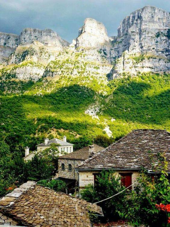 Το υπέροχο Συρράκο, στα Τζουμέρκα, με φόντο τις επιβλητικές κορυφογραμμές της Πίνδου